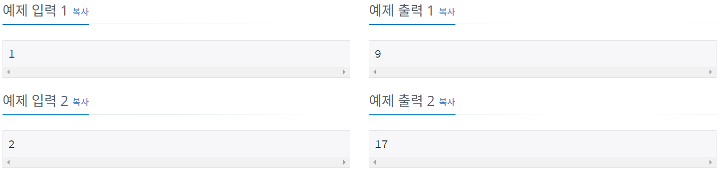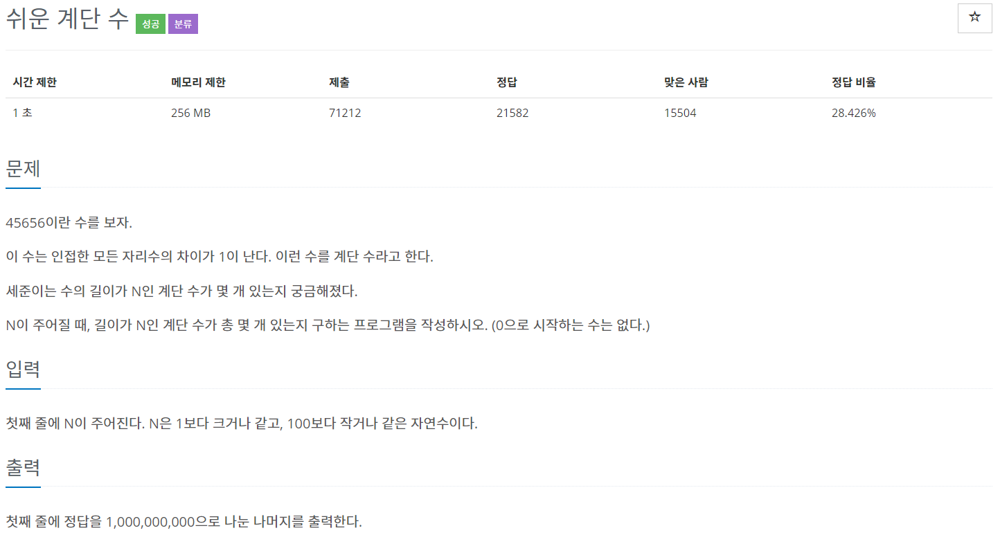 # 내 풀이 n = int(input()) # 자리수마다 가장 뒤에 오는 숫자 0 ~ 9를 고려하는 DP 테이블 생성 dp = [[0] * 10 for _ in range(101)] # DP 테이블 초기화 for i in range(1, 10): dp[1][i] = 1 # 바텀업 다이나믹 프로그래밍 수행 for i in range(2, 101): # 0과 9에 대해 점화식 수행 dp[i][0] = dp[i - 1][1] dp[i][9] = dp[i - 1][8] # 1 ~ 8까지의 점화식 수행 for j in range(1, 9): dp[i][j] = dp[i - 1][j - 1] + dp[i - 1][j + 1] # 결과 출력 print(sum(dp[n]) % int(1e9))'Coding Test > 백준' 카테고리의 다른 글