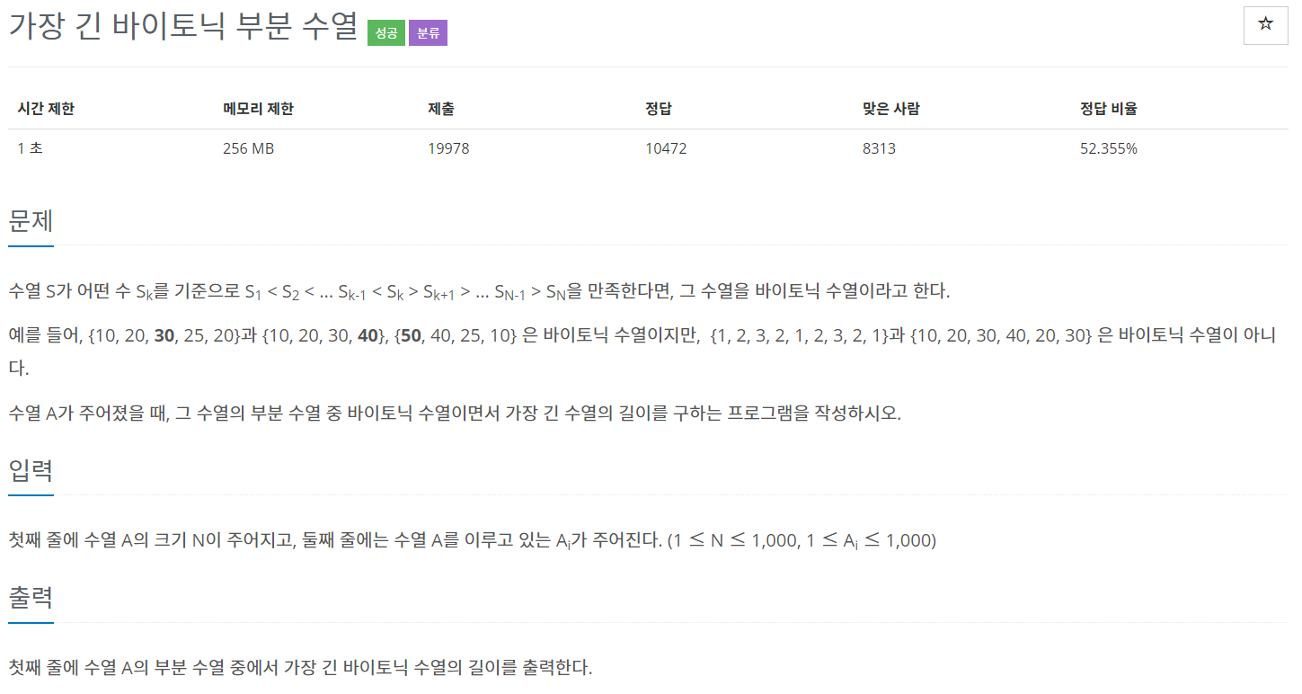 # 가장 긴 바이토닉 부분 수열의 길이 찾기