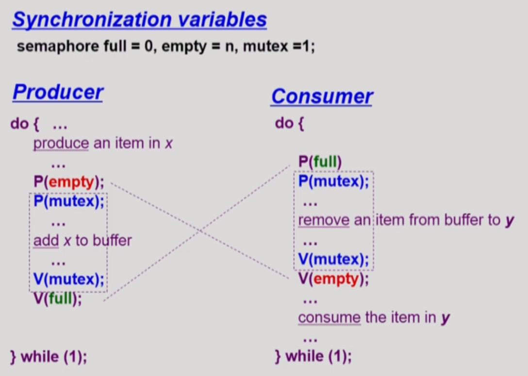 (2) 버퍼의 Resource Count를 위한 Counting semaphore