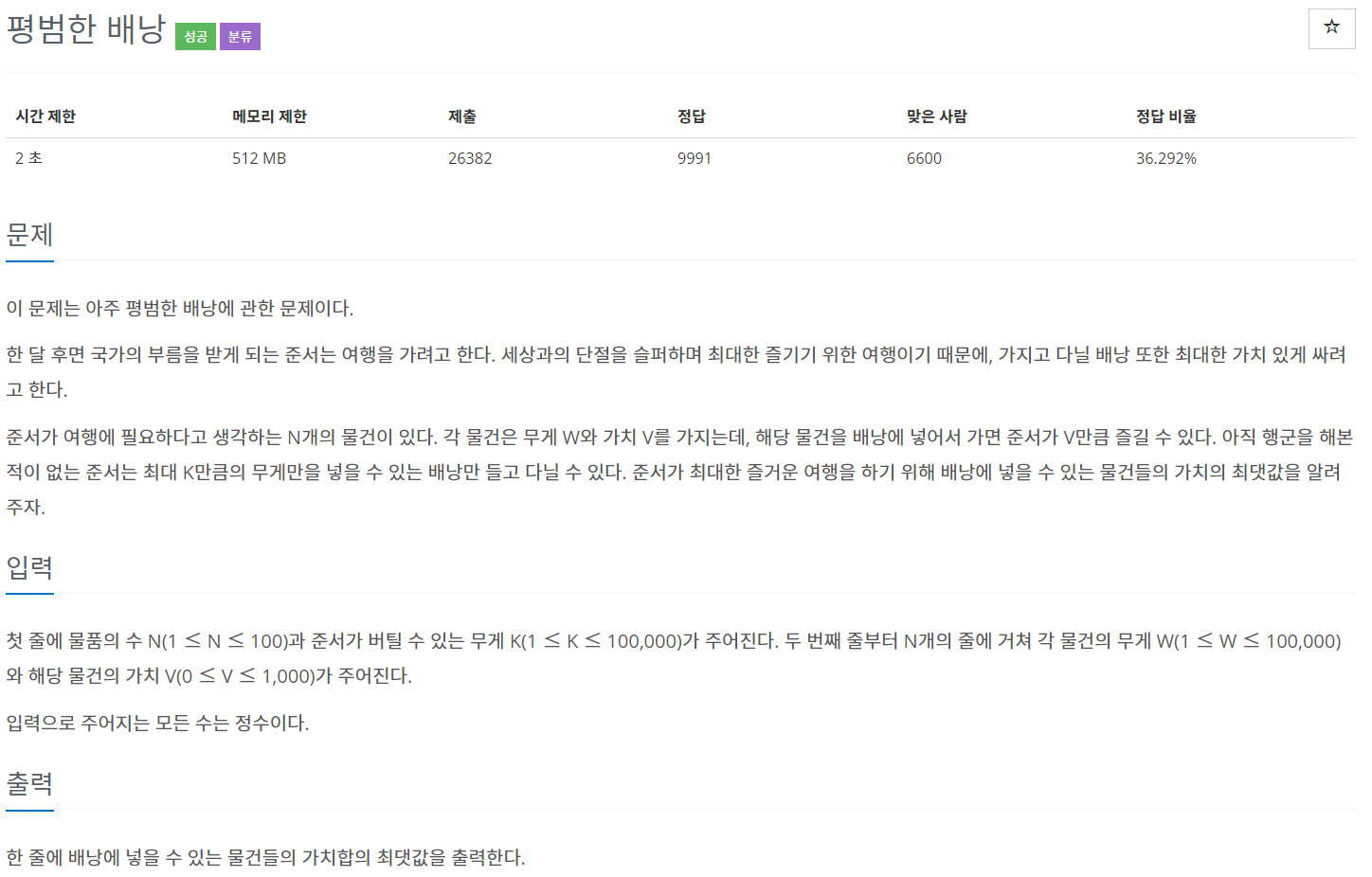 # 1 ~ k까지의 무게에 대해 다이나믹 프로그래밍 진행