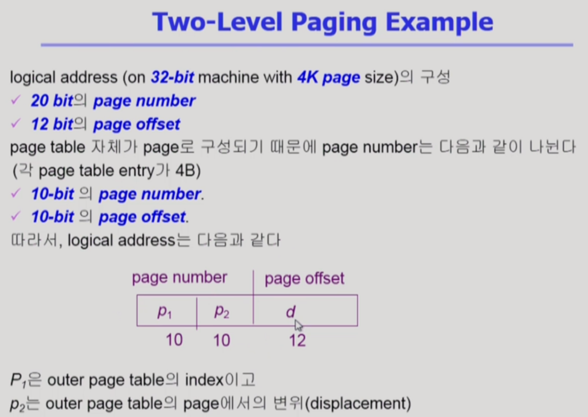 Two-Level Page Table의 주소 공간에 대한 bit 수 분배는 위의 예시와 같으니 참고하도록 하자.