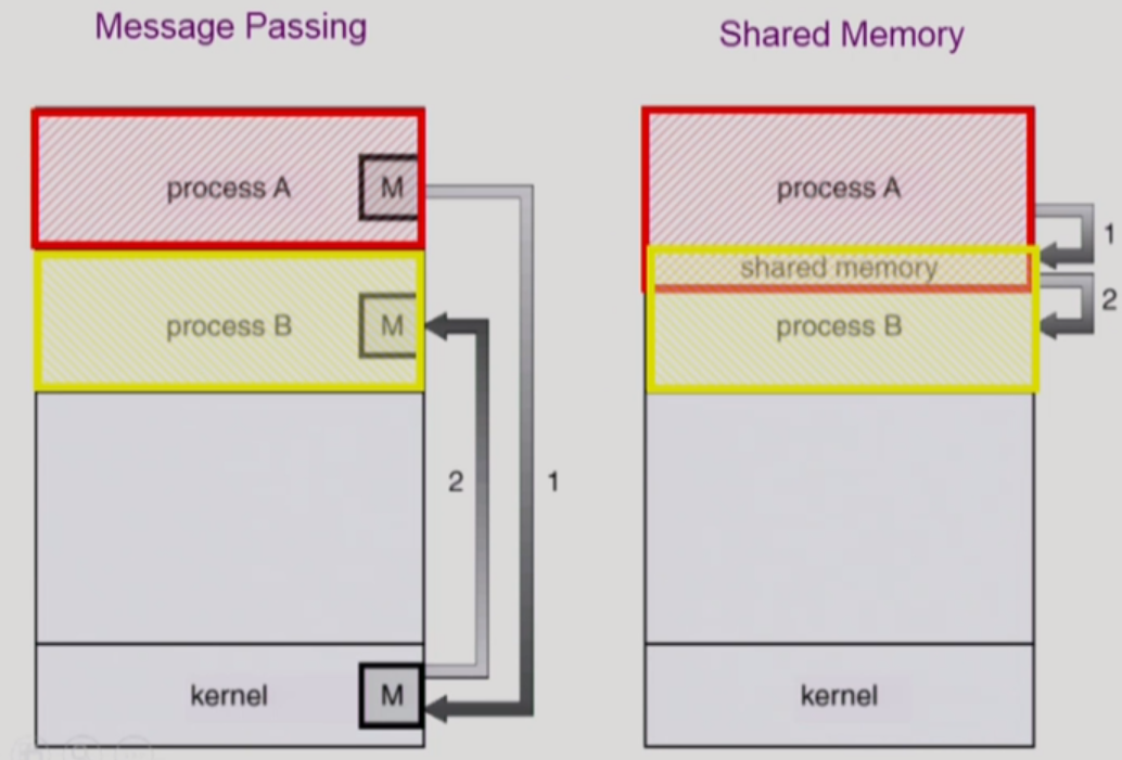 <IPC의 두 가지 방법> (1) massage passing : 커널을 통해 메시지를 전달한다. (프로세스들끼리 직접은 불가능하다.)