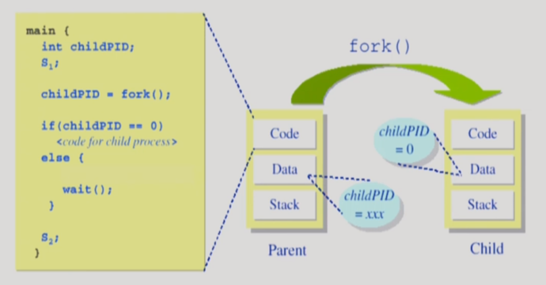 또한, 부모 프로세스는 fork의 return 값으로 양수, 자녀 프로세스는 0을 pid에 취해 서로를 구분한다.