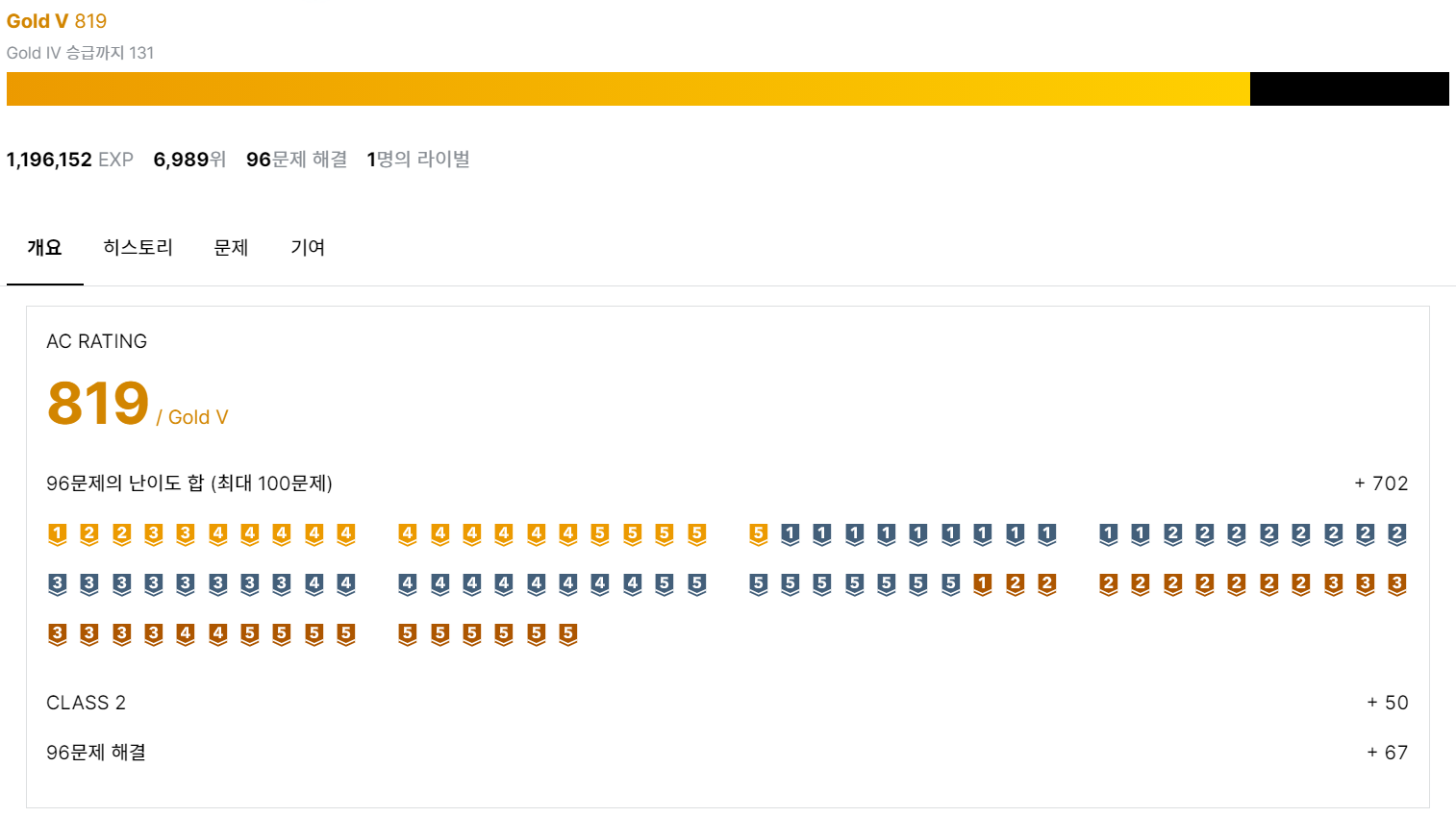 아름아름 1일 1문제 알고리즘 문제 풀이를 계속 하다보니 solved.ac에서 골드 티어에 도착해 있었다. (물론 못 푼날도 당연 존재한다...ㅋㅋㅋ) 알고리즘 괴수분들은 정말 많으시니까. 대단한 기록일리는 만무하지만, 그래도 예전 알고리즘 문제 유형도 몰랐던 갓난아기 시기에 비하면 정말 장족의 발전을 했다고 느낀다. 꾸역꾸역 어떻게든 잘해왔구나.