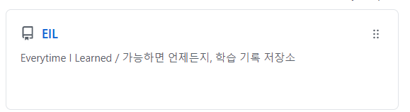 블로그에 학습을 정리하는 것이 나쁠리가 없다. 정말 좋은 것이다. 다만, 이제부터는 TIL과 개발 블로그를 분리하려고 한다. 지금까지 했던 것은 TIL에 가까운 느낌이었는데, 단순히 학습을 정리하는 것은 이제 Github에서 하려고 한다. 나는 EIL이란 이름으로 저장소를 만들었다. Today는 나에게 의미가 없다고 생각해서 Everytime I Learned, 가능하면 언제든지 나의 학습을 기록하고자 한다.