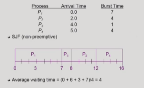 - CPU burst time의 추정 : CPU burst time은 추정만 가능하기에 실제 정확한 시간을 알고 SJF를 수행하기는 어렵다.