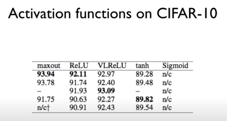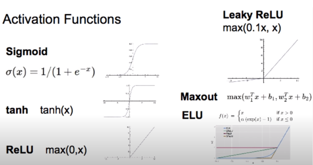 ReLU 함수에서 더 나아가 Leaky ReLU, tanh, Maxout, ELU 등의 다양한 activation 함수들이 존재하고 상황에 따라 효과적인 함수를 선택해 사용할 수 있다.