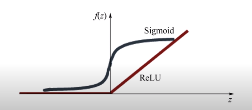 Geoffrey Hinton 교수는 Vanishing gradient의 원인을 시그모이드 함수에서 찾았다. (We used the wrong type of non-linearity) 시그모이드 함수는 항상 1 미만의 값을 갖는 한계점이 있기 때문에, 입력이 0 이하인 범위에서는 y = 0 함수를 갖고 입력이 0 초과인 범위에서는 y = x 함수를 갖는 ReLU 함수를 시그모이드 함수의 대안으로 제시했다.