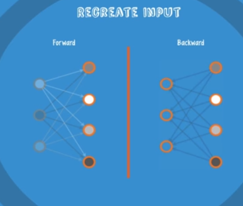 RBM이란 Input을 모델에 넣어 Output을 구하고 (encoder), 구한 Output 값에 다시 가중치를 곱하여 Input 값을 예측해낸 뒤 (decoder), 원래의 Input 값과 예측한 Input 값의 차가 최저가 되도록 (두 값이 거의 동일해지도록) 가중치를 조정해나가며 초기값을 설정하는 방법이다.