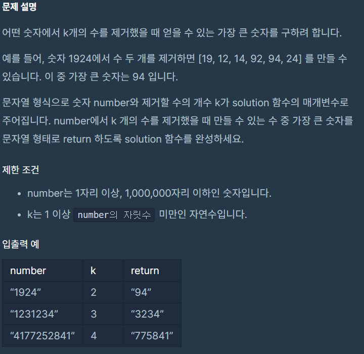 # 만일 제거할 개수가 남았는데 가장 큰 숫자를 얻었다면, 그대로 리턴