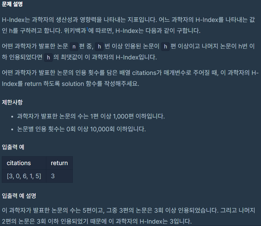 # h의 최댓값이 모든 논문의 개수일 경우
