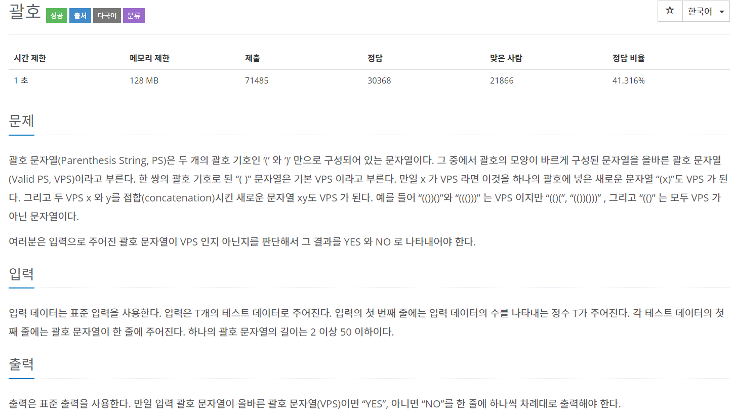 [백준 9012번] 괄호Coding Test/백준 2021. 1. 4. 21:56