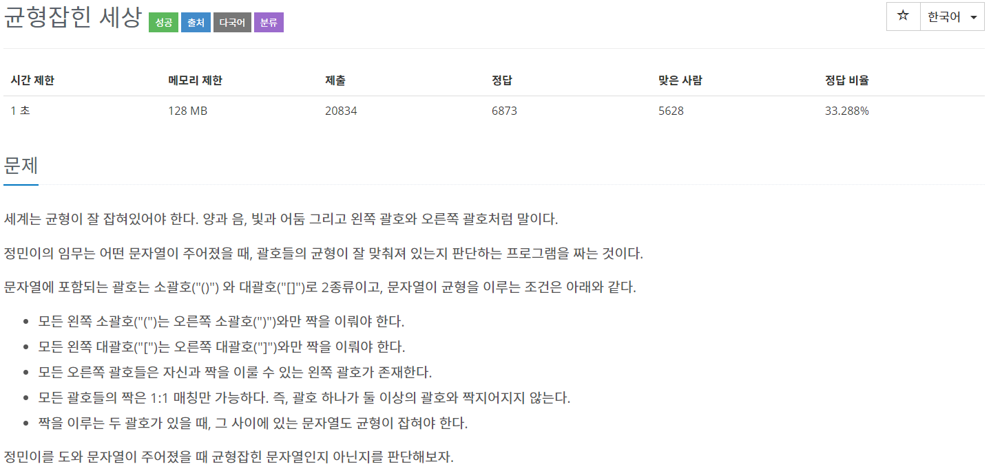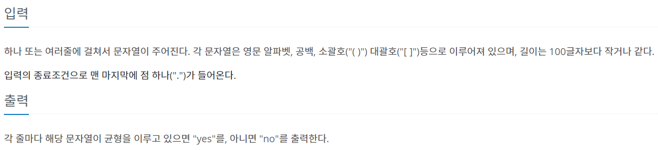 [백준 4949번] 균형잡힌 세상